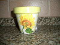 Este vaso estava com a côr original do barro mas como estava a ficar escuro da humidade e parecia velho, decidi pintá-lo, ficou mais bonito e alegre.